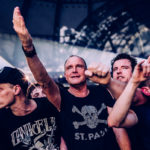 Wir wechseln noch ein letztes Mal den Standort und treffen auf der gegenüberliegenden Seite im 1. Rang auf ein Pogopotpourie im Innenraum, bestehend aus Frauen und Männern verschiedenen Alters. Die musikalische Einladung für ein Tänzchen folgt postwendend mit „Danke für nichts“. Und weil man auf einem Bein nicht (mehr) stehen kann, legt die Band mit „Bomberpilot“ direkt nach. Aus Schweiß, Rotze und Bier entsteht in Windeseile, bei gefühlten 40 Grad im Innenraum, eine spiegelglatte Eisfläche, die selbstredend ausprobiert werden möchte. Von oben erinnert es mich irgendwie ans Leben: Auf der Schleimspur anderer ausrutschen, hinfallen und wieder aufstehen. Angerempelt werden, hinfallen, jemand mit nach unten ziehen, wieder aufrappeln und von vorn beginnen usw. Vielleicht ist die Interpretation aber auch viel zu philosophisch und eigentlich ist der Grund ganz einfach: Spaß. Ich bin glücklich, dass nach dem Zugabenblock alle wieder stehen und sich in den Armen liegen – sei es nun aus Zuneigung, oder weil anders keine Körperspannung mehr hergestellt werden kann. Egal, Hauptsache ihr habt Spaß!