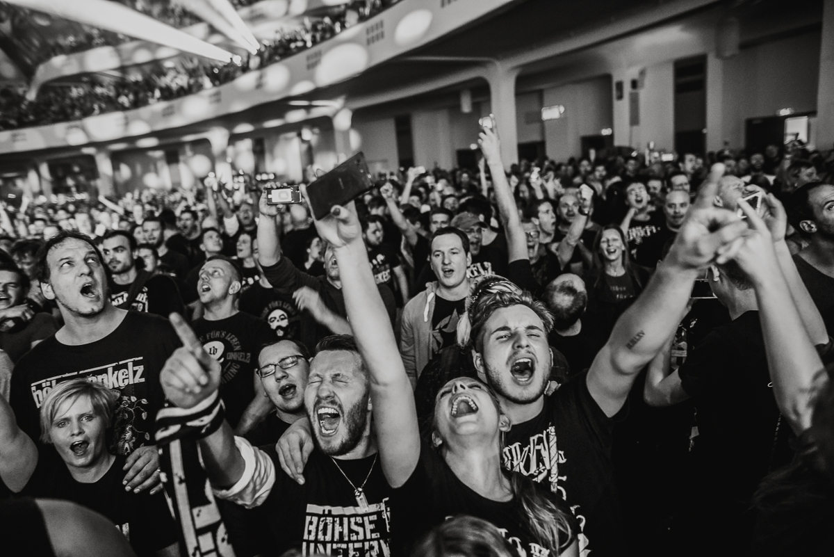 Als sich der Vorplatz zur Festhalle zusehends füllt, die ersten „Onkelz, Onkelz“-Rufe aus der Ferne den Weg weisen, ist zu erahnen, dass Teil II heute Abend noch eine Schippe drauf legen kann. Die Vorzeichen dafür stehen jedenfalls gut: Der Einlass beginnt pünktlich und läuft reibungslos. Für die kommenden zwei Stunden wird die Festhalle abermals zum Auffangbecken für Freude, Trauer, Wut und Schmerz. Eine Art von musikalischer Gruppentherapie, die von den Onkelz geleitet wird. Eine Führung durch die Klaviatur der Emotionen in 23 Akten, an dessen Ende genügend Dopamin freigesetzt wurde, um es bis zum nächsten Konzert auszuhalten.
