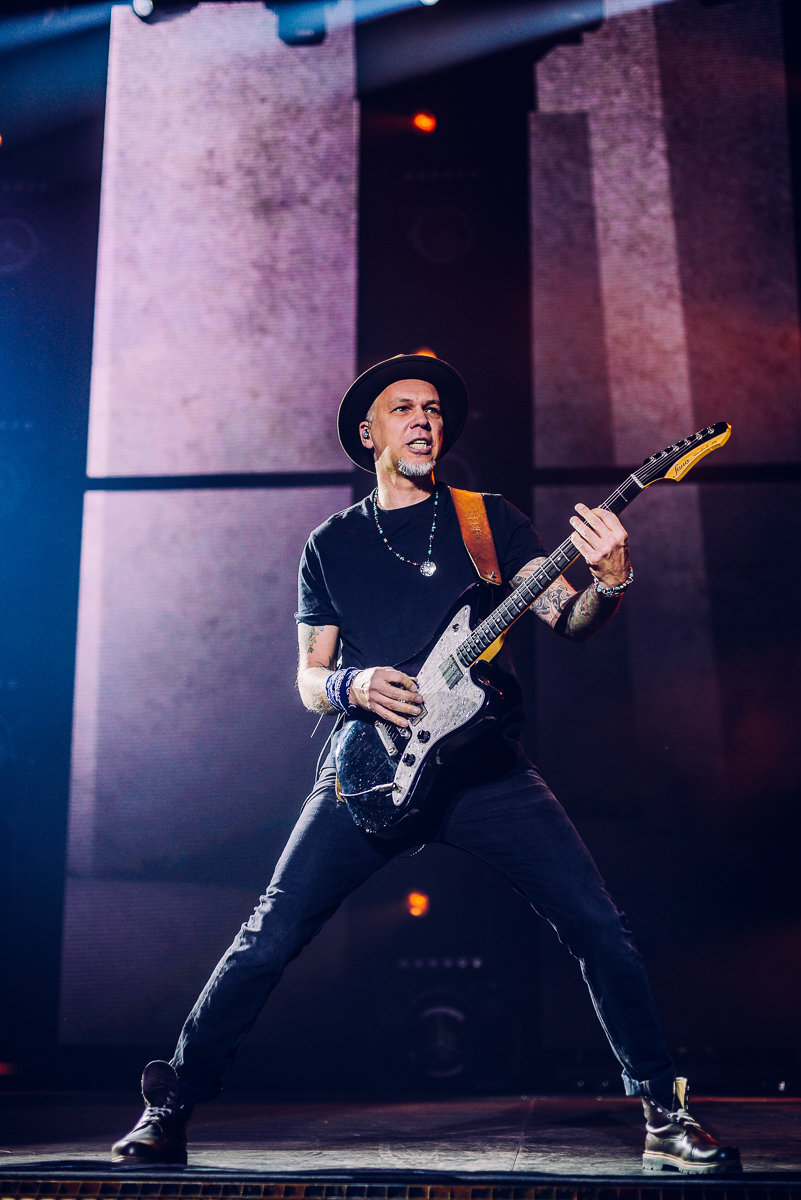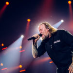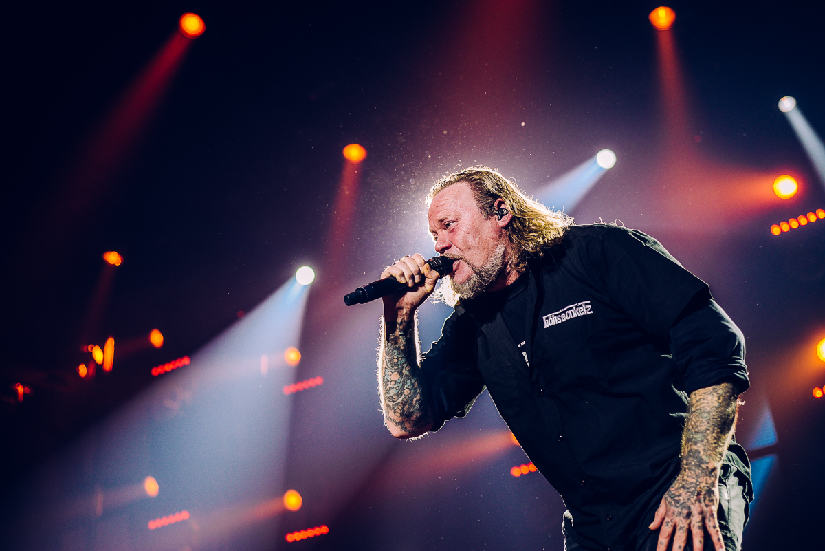 „Oh, wie ist das schön, Oh wie ist das schön, so was hat man lange nicht gesehen, so schön, so schön!“ – Wer bereits so nach mehr als 12 Jahren Abstinenz begrüßt wird, ohne eine einzige Note gespielt zu haben, der kann mit Fug und Recht behaupten, die geilsten Fans der Welt zu haben. Apropos, die geilsten Fans: Ein Wiedersehen der besonderen Art erleben heute auch Jorie und Elizabeth, die extra aus Chicago und Kalifornien angereist sind, um die Onkelz wiederzusehen, deren Musik sie bereits seit Jahrzehnten hören. Was dann folgt, knüpft nahtlos daran an, wo wir in Stuttgart II aufgehört haben. Die „alten Schinken“, wie Stephan sie nennt, zünden ohne Vorwarnung: „10 Jahre“, „Nie wieder“ und „Gehasst, verdammt, vergöttert“ lösen direkt ein mittelschweres Beben in der Stadthalle aus. Fast 30.000 Hände finden gemeinsam die Wahrheit und obwohl Stephan heute gesundheitlich angeschlagen ist, tut das der Spielfreude der Band insgesamt keinen Abbruch. Kevin kompensiert die teils fehlenden Backings mit bester Stimme und kann das hohe Niveau bis zum Schluss halten. Unterstützt wird er von den feiernden Neffen und Nichten, die getreu dem Motto „Des letzte Hemd hot kane Sackln“ zwei Stunden Vollgas geben. Vollgas gibt auch Pe, der die Bassdrum so heftig malträtiert, dass das Mikro für die Abnahme kurzeitig ausfällt. Die Band nimmt es mit Humor und Gonzo überbrückt die Zeit der Reparatur mit Anekdoten vom legendären „Live in Vienna“ 1991. Stephan ergänzt, dass er damals mit Auge zusammen ins Publikum gesprungen ist, um ein paar Nazis aus der Halle zu werfen.
