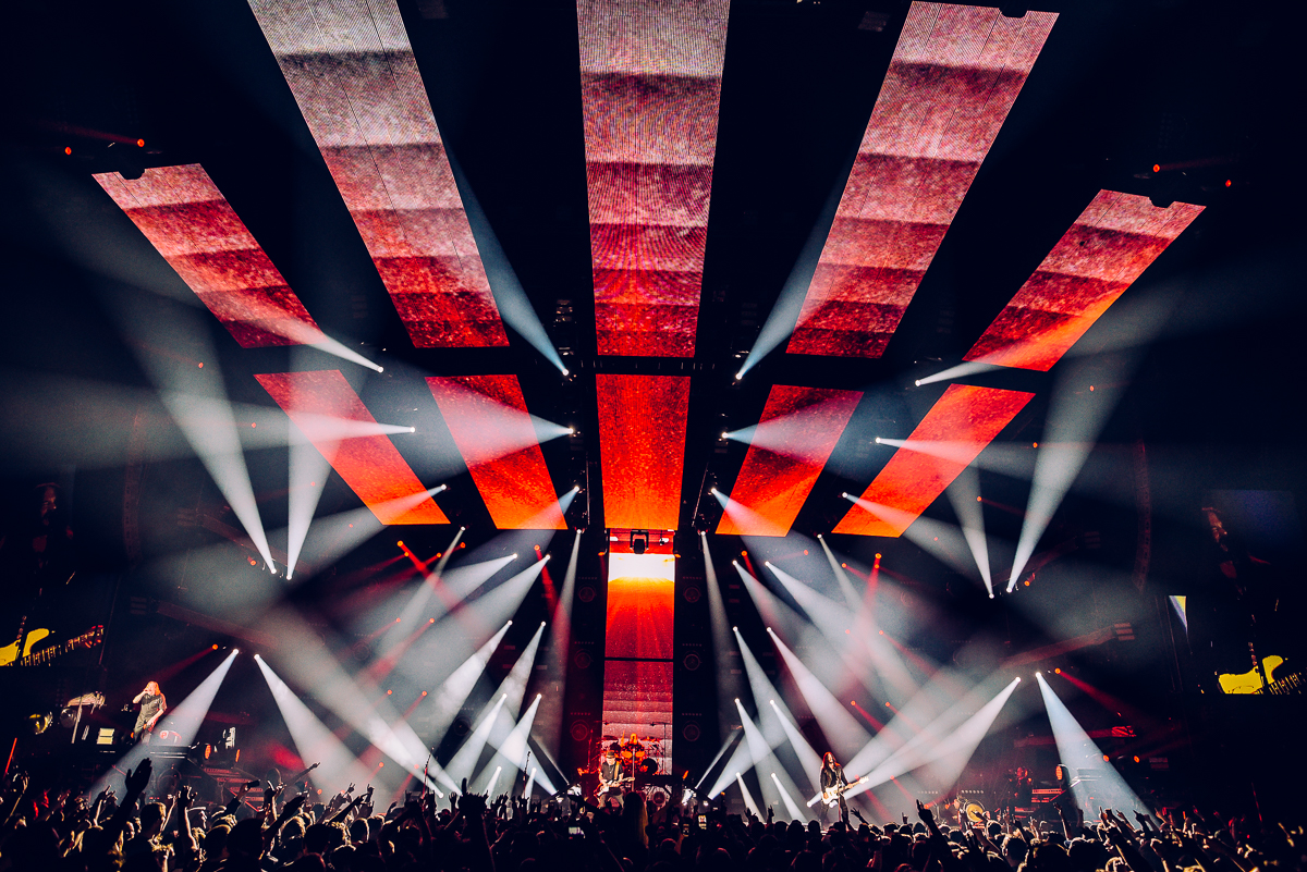 Mit knapp 750 km von Wien nach Zürich, steht uns eine der weitesten Fahrten der Tour bevor. Unser U-Boot setzt gegen 12 Uhr mittags am Samstag in Wien ab und wir erreichen Zürich etwa kurz nach Mitternacht am Sonntag. Der Aufbau beginnt abermals um 3 Uhr und zum ersten Mal, nach Bremen, können wir das komplette Set der Bühne aufbauen. Es ist mir, auch nach 7 gesehenen Shows, noch immer ein Rätsel, wie dieses Ungetüm aus Stahlseilen, LED-Wänden, Boxen, Lichttechnik, Ketten und Traversen etc. an die Hallendecke kommt (dort hält) und vor allem, wer sich so etwas ausdenkt, plant und umsetzt. Es ist ja nicht so, dass wir in jeder Stadt einfach an die Halle fahren und unserer Bühne aufbauen. Nein, der Plan, wie die Bühne aussehen wird, wie sie aufgebaut wird, steht bereits Monate vorher fest und muss durch zahllose Abstimmungsrunden mit der Band, bevor der Statiker der Halle seinen Stempel setzt und damit grünes Licht für die Umsetzung gibt.