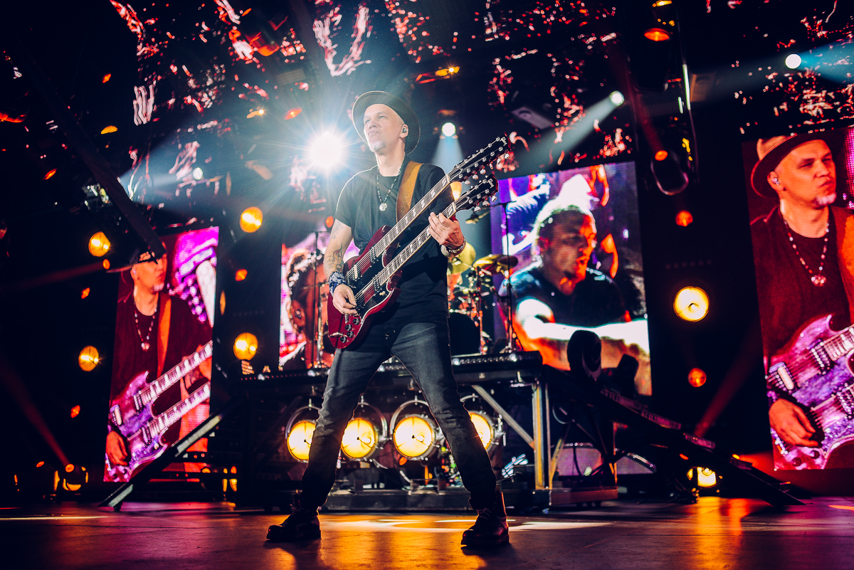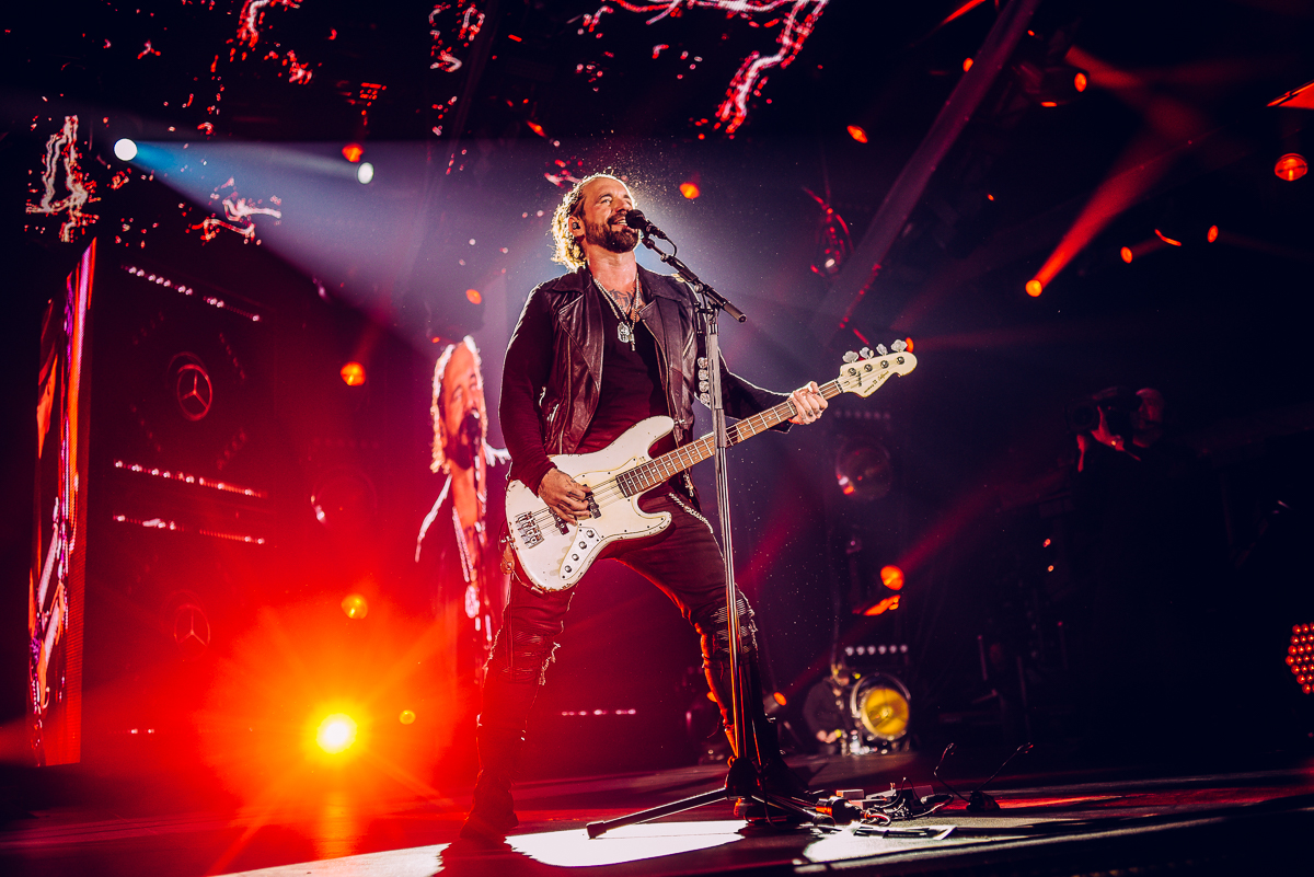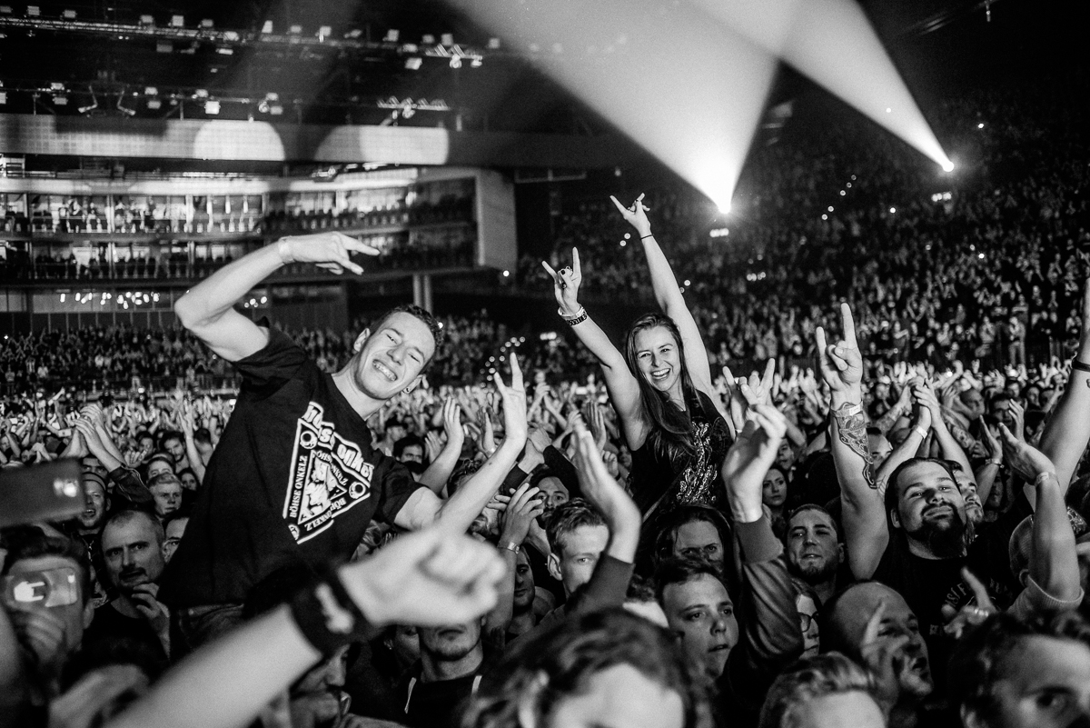Bierbecher fliegen durch die Luft, der komplette Innenraum, sowie jede Tribüne, tanzt und singt. Die Band ist abermals bestens aufgelegt und spielt sich in einen zweistündigen Rausch. Durch die erweiterten LED-Wände werden die Visuals darauf nochmal eindrucksvoller, finde ich. Bei „Wieder mal ´nen Tag verschenkt“ sehe ich zum ersten Mal auch mehr Feuerzeuge als Smartphones, was direkt eine andere Atmosphäre schafft und vor allem schönere Bilder. Weiter so!