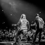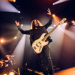 Man merkt der Band, und insbesondere Kevin an, dass sie heute Abend nochmal die obligatorische Schippe drauf legen wollen. Kevin heizt ein, wo er kann und ich bin jedes Mal beeindruckt, was es für Jubel auslöst, wenn er die Seitenpodeste hinaufsteigt. Dann werden die Arme in den Himmel gestreckt, als wollte man versuchen mit ihm abzuklatschen, als wäre er für einen Moment greifbar. Kevin, das ist der Inbegriff von Hass und Liebe. Ein ständiger Kampf mit Yin und Yang, mit Licht und Schatten, mit sich selbst. Das verbindet ihn mit so vielen und deshalb ist er auch heute Abend nicht nur der Sänger der Onkelz, sondern der wandelnde Ausdruck und Beweis, dass man alles im Leben schaffen kann. Dass man sich immer neu erfinden kann. Gleichzeitig zeigt sich spätestens bei „Wo auch immer wir stehen“, dass Kevin viel Energie aus den nicht enden wollenden Fangesängen zieht. Diese Energie zeigt sich auch heute Abend. Die Band agiert noch immer mit einer Spielfreude, die vermuten lässt, dass es sich um das erste Konzert der Tour handeln könnte, obwohl wir schon weit über die Hälfte hinter uns haben.