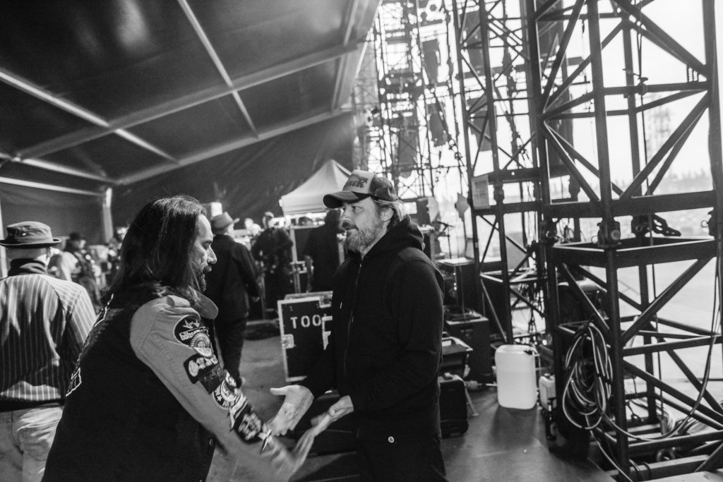 Was unsere Freunde von The New Roses, Phil Campbell and the Bastard Sons, Haudegen und In Extremo getrieben haben, lest ihr im Bericht von Micha. Hier soll es nur um Themen gehen, die im Onkelzkosmos Relevanz besitzen. Daher würde ich ganz gerne, vor dem eigentlichen Live-Teil, ein paar Leute würdigen, ohne die eine Onkelz-Show (und damit das Festival) nicht funktionieren würde, und die – zum Teil – schon seit absurd vielen Jahren dafür Sorge tragen, dass eine Onkelz-Show mehr ist, als die Summe ihrer einzelnen Teile. Ich kann unmöglich alle aufzählen, deshalb nur ein kleiner Abriss derer, die Unglaubliches schaffen. Applaus und andächtiges Nicken für: Jerry Appelt (Licht) und sein Team. Es ist immer wahnsinnig beeindruckend, was dieser sympathische, total bodenständige Typ an irren Ideen in die Light-Show einbaut. Kein Wunder, dass sich die Stars, international und national, die Finger nach ihm lecken.