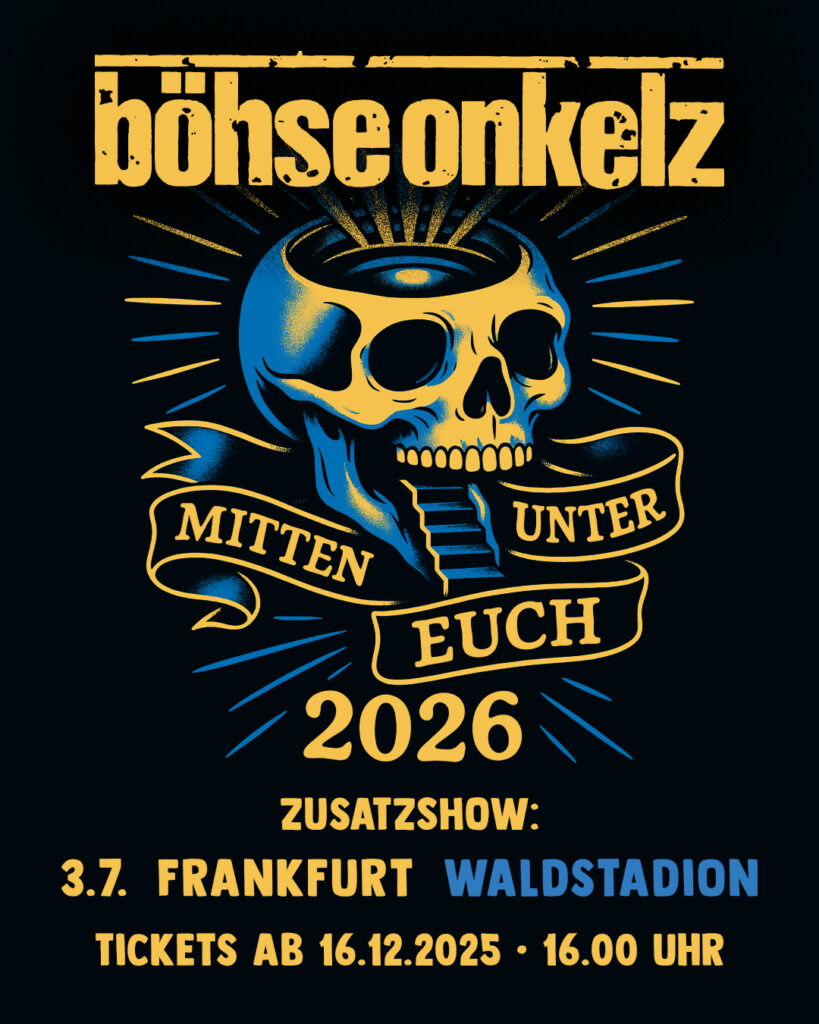 Am 3. Juli 2026 spielen wir im Rahmen unserer „Mitten Unter Euch”-Tour eine Zusatzshow im Waldstadion. Alle, die bislang leer ausgegangen sind, sollten sich den Termin für den Vorverkauf rot im Kalender anstreichen: