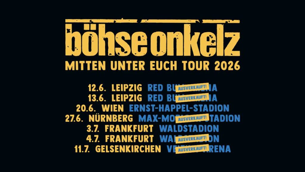 Karten für Wien gibt es noch unter: https://www.oeticket.com/event/boehse-onkelz-ernst-happel-stadion-20890284/