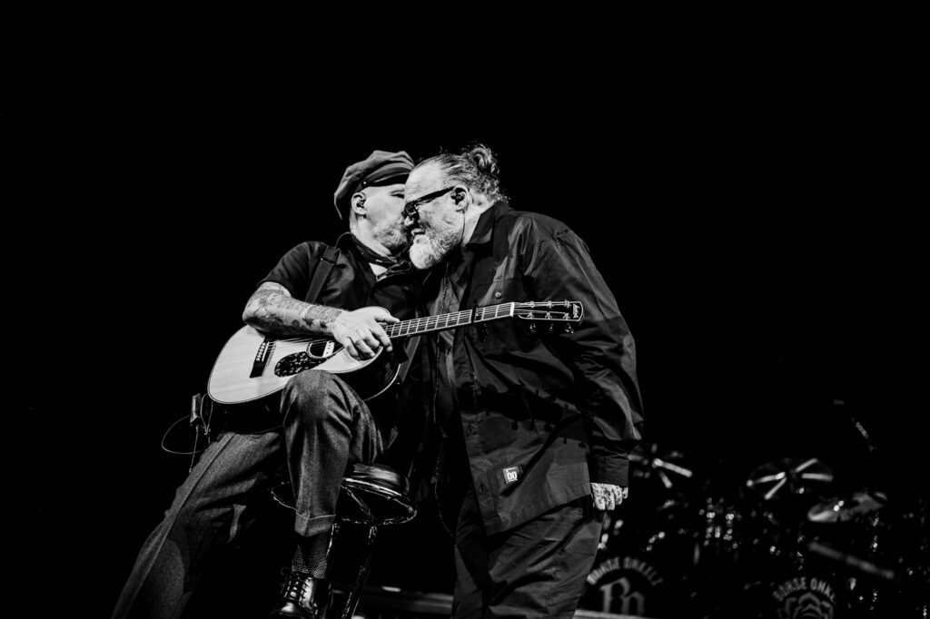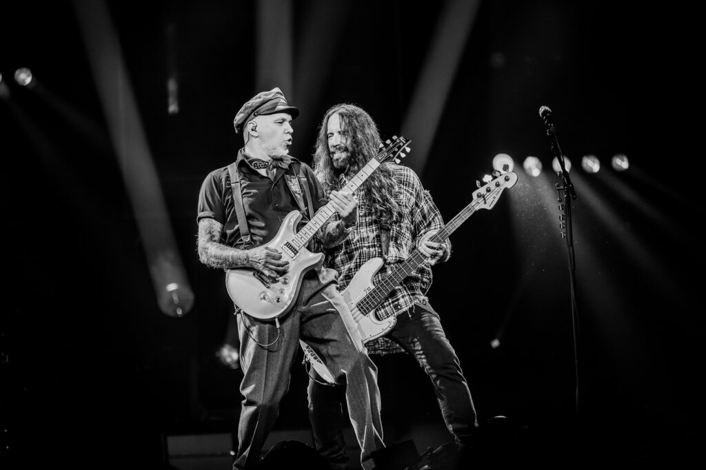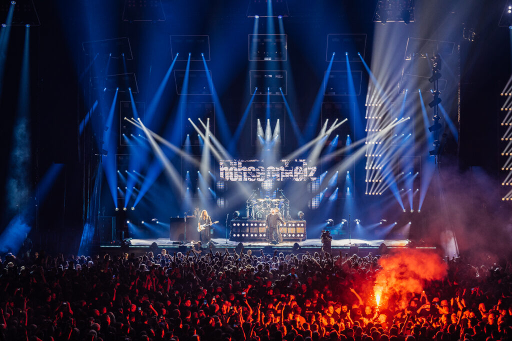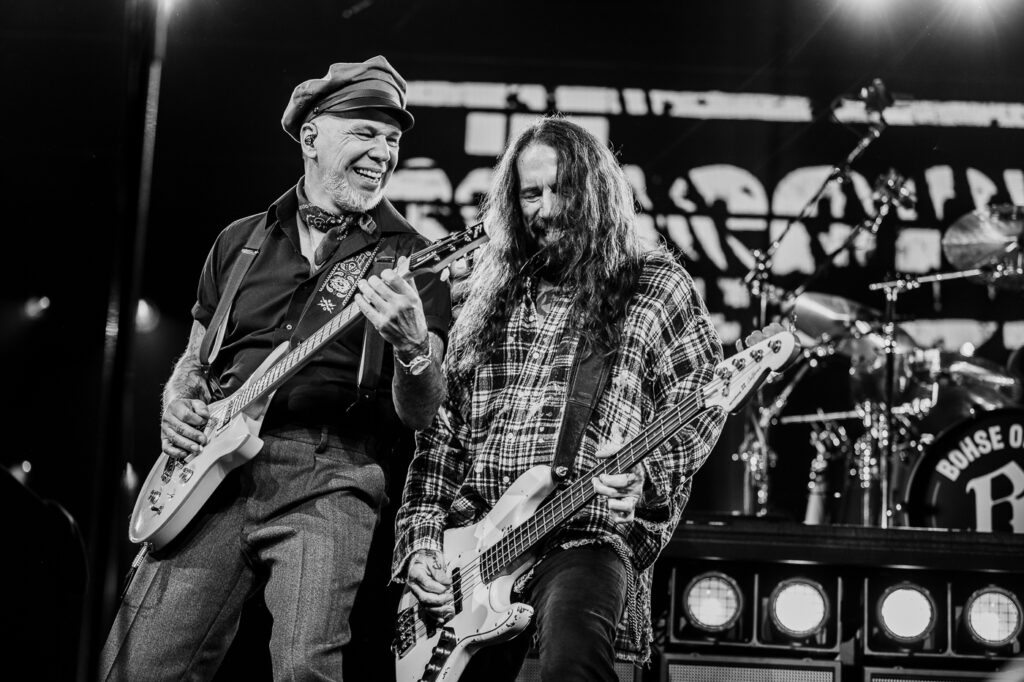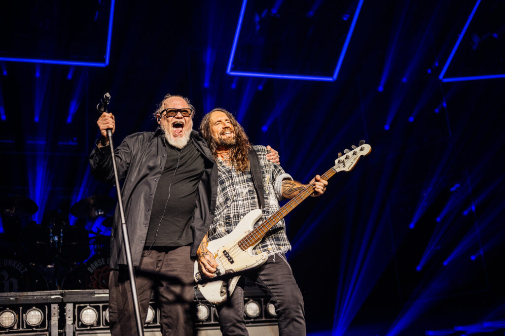 Wie bereits 2022 war die ZAG Arena auch in diesem Jahr organisatorisch wieder ganz vorn mit dabei. Freundliches Personal, das ihre Aufgaben kennt und beherrscht, führten im Ergebnis auch in diesem Jahr zu einem reibungslosen Ablauf beim Einlass. Die Stimmung unter den Fans war daher bereits von Beginn an ausgelassen und voller Vorfreude auf die beiden kommenden Abende mit den Onkelz. Pünktlich um 20:45 Uhr war es dann soweit – Licht aus, die Onkelz sind im Haus! Mit „Hier sind die Onkelz“, „Finde die Wahrheit“ und „Gehasst, verdammt, vergöttert“, setzt die Band Abend für Abend auf dieser Tour bereits in den ersten 15 Minuten ein Statement, dass ihnen live noch immer der Funken von der Bühne auf die Fans gelingt. Gerade „Gehasst, verdammt, vergöttert“ wird von Gonzo mit so einer großen Spielfreude und Leidenschaft vorgetragen, dass es mir immer und immer wieder ein Lächeln ins Gesicht zaubert, ihm dabei zuzuschauen.