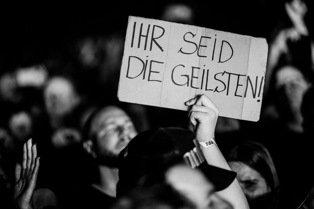 Von hinter der Bühne springe ich abschließend noch vor die Bühne. Leute, was ihr in den einzelnen Städten, Abend für Abend abgerissen habt, sprengt meinen Wortschatz. Ihr habt diese Tour maßgeblich mit eurer Liebe und eurer Leidenschaft getragen. Ihr habt vor den Hallen stundenlang in der Kälte gewartet, habt in der Halle wieder gewartet und seid dennoch bei jedem Showstart zur Höchstform aufgelaufen. Ihr habt jeden Song gesungen, als wäre es euer letzter, habt in jeder Stadt versucht, den Dezibel-Rekord zu knacken (das war für uns Abend für Abend ein Highlight), und seid am Ende verschwitzt, aber glücklich nach Hause gegangen. Egal, wie viele Shows wir gespielt haben, daran werden wir uns nie gewöhnen. Das wird nie selbstverständlich sein. Danke für alles – ihr seid die Geilsten!