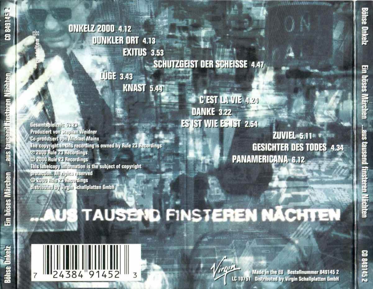 Aufgenommen in den irländischen Totally Wired Studios / Dublin, versprüht das Album Düsternis. Angefangen beim Artwork, um das sich erstmals die renommierte Berliner Grafikagentur „Die Gestalten“ kümmert, bis hin zu den Texten und Kompositionen ist „Ein böses Märchen…“ ein einstündige Lehrstunde über die Abgründe unserer Gesellschaft. „Knast“, „Exitus“, „Gesichter des Todes“, „Schutzgeist der Scheiße“ und so weiter. Einzig „Danke“ fällt aus dem Rahmen. Der Track, positiv und partytauglich, schließt den Kreis zu den Fans der Band, den Neffen und Nichten der Onkelz, mit denen vor zwanzig Jahren alles begann. „Onkelz 2000“ reißt die Jahre 1980-2000 in vier Minuten an und verzichtet dabei auf den ansonsten gern genommenen Pathos.